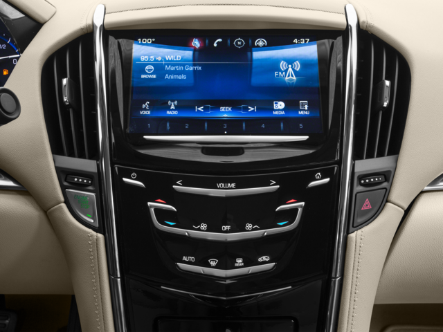 - Cadillac CUE Information and Media Control System with Embedded Navigation AM/FM stereo with embedded navigation, 8" diagonal color information display, three USB ports, auxiliary input jack, Natural Voice Recognition and Phone Integration for Apple CarPlay capability for compatible phone (Also includes (KI6) 110V power receptacle.)